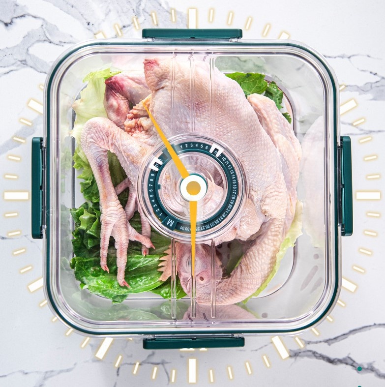 • Gestion de la Fraîcheur : Équipé d’un couvercle avec enregistreur de temps manuel, il vous permet d’indiquer la date de stockage afin de consommer vos produits (viandes, fruits, légumes) durant leur période de conservation optimale.